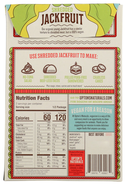 View full detailsOur first organic Jackfruit offering comes lightly seasoned with onion, garlic, sea salt and black pepper. Shredded, rather than in chunks like our...
