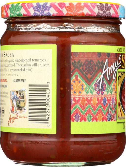 This mild salsa is full of flavor from sweet, organic, vine-ripened tomatoes, peppers, onions and a squeeze of lime juice.