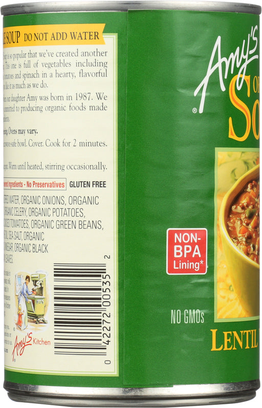 This hearty, lentil-based soup gets even more robust flavor from veggies, like sweet organic carrots, vine-ripened tomatoes and tender green beans.