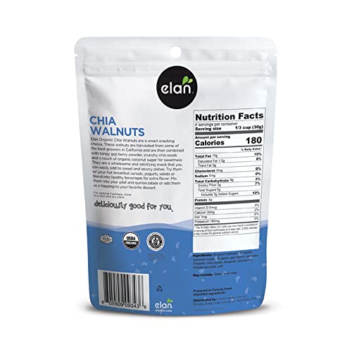 View full detailsElan Organic Chia Walnuts are sourced from the best growers before being prepared with tangy goji berry powder, crunchy chia seeds with a touch of ...